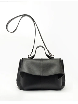 Elevate your everyday style with this sophisticated structured handbag crafted from good quality textured vegan leather in a black color. Designed for both function and fashion, this bag features a unique sculptural flap closure, clean stitch detailing, and a roomy interior perfect for your daily essentials.